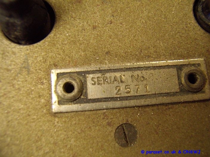 A genuine Mk7 Paraset. So here it is pictures of an original Paraset as submitted by ON6WJ. Jos is glad that he had the chance to meet a very friendly Mr. Erik Evrard the owner of a genuine and very early model Paraset who gave him the opportunity to take photographs of this unique PARASET Jos has submitted the photos but hopes that no one will make any profit from them as he is not doing so himself. This is why a watermark has been placed on each photo. They are submitted just for all enthusiasts and interested people to see!!