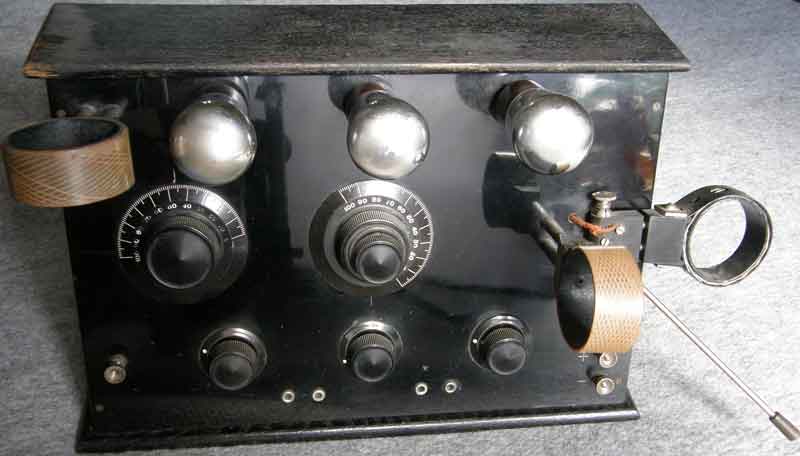 En högteknologisk apparat från 1920-talet byggd av en Ing Olsson i Sölvesborg. Såld till en järnvägstjänsteman i Sölvesborg när rundradion startade 1925. Denna köpte jag på en loppis nov 1992.