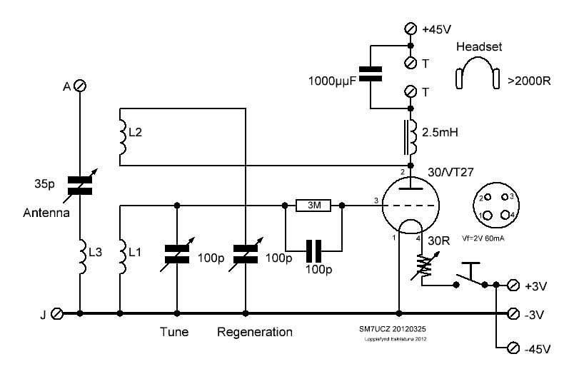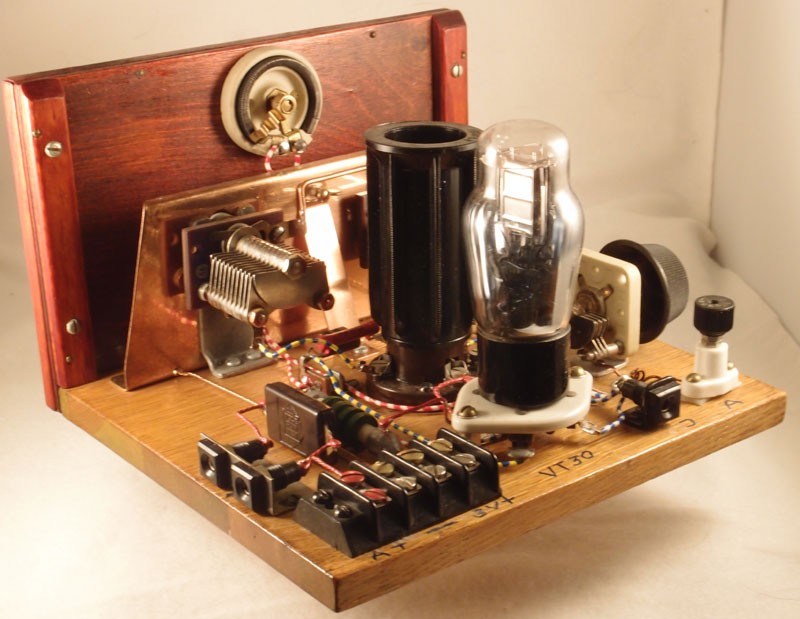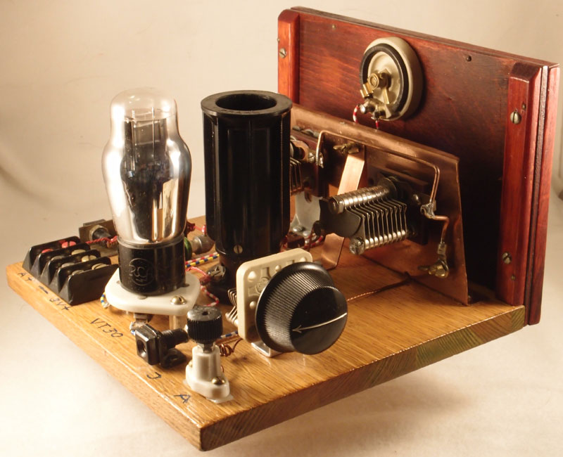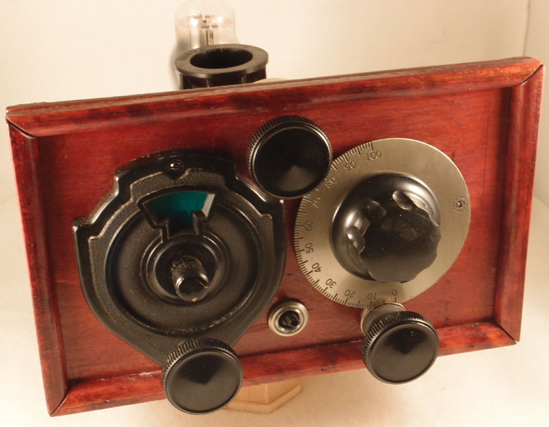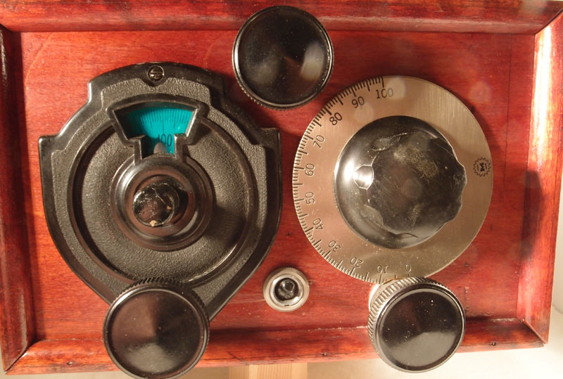 Tune till vänster och regeneration till höger. Reostat i toppen och strömbrytaren nere i mitten.