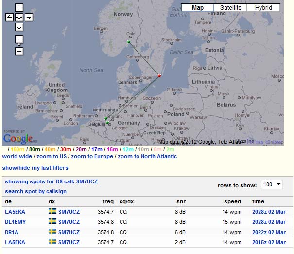 SkimmerKopplade upp en PIC som körde lite CQ ett tag, och följande stationer hörde mej med 25mW |