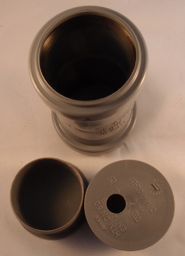 Antennen monterades i en skarvmuff för 50mm avloppsrör med tätningslock.