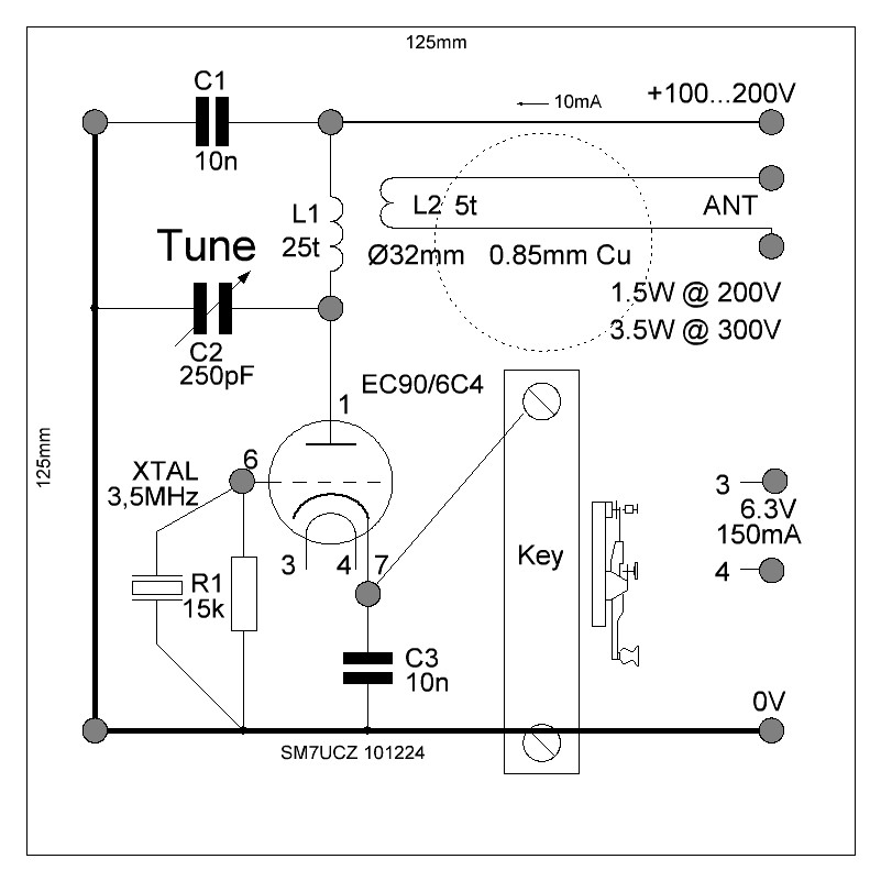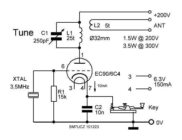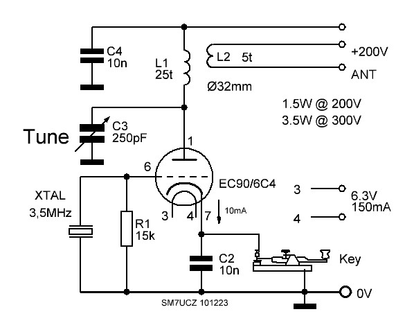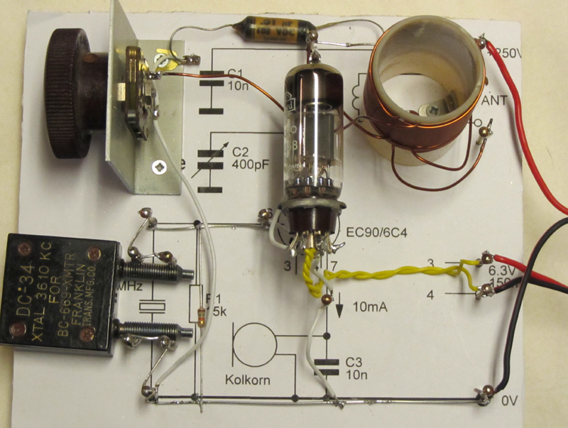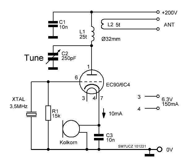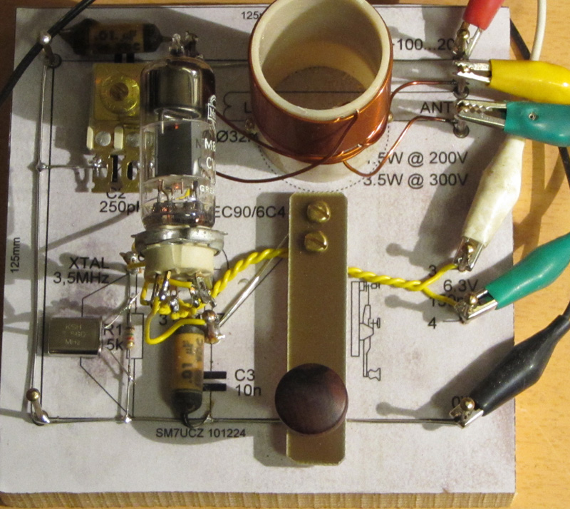 Et fåtal komponenter och det blir en amatörsändare på ca 1.5W ut i antennen med 200V på anoden.