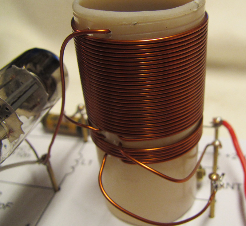 Spikade upp kopplingen, lindade en spole på 32mm elektrikerrör med 25 varv, och 5 varv för antennspolen. 0.8mm Cu.