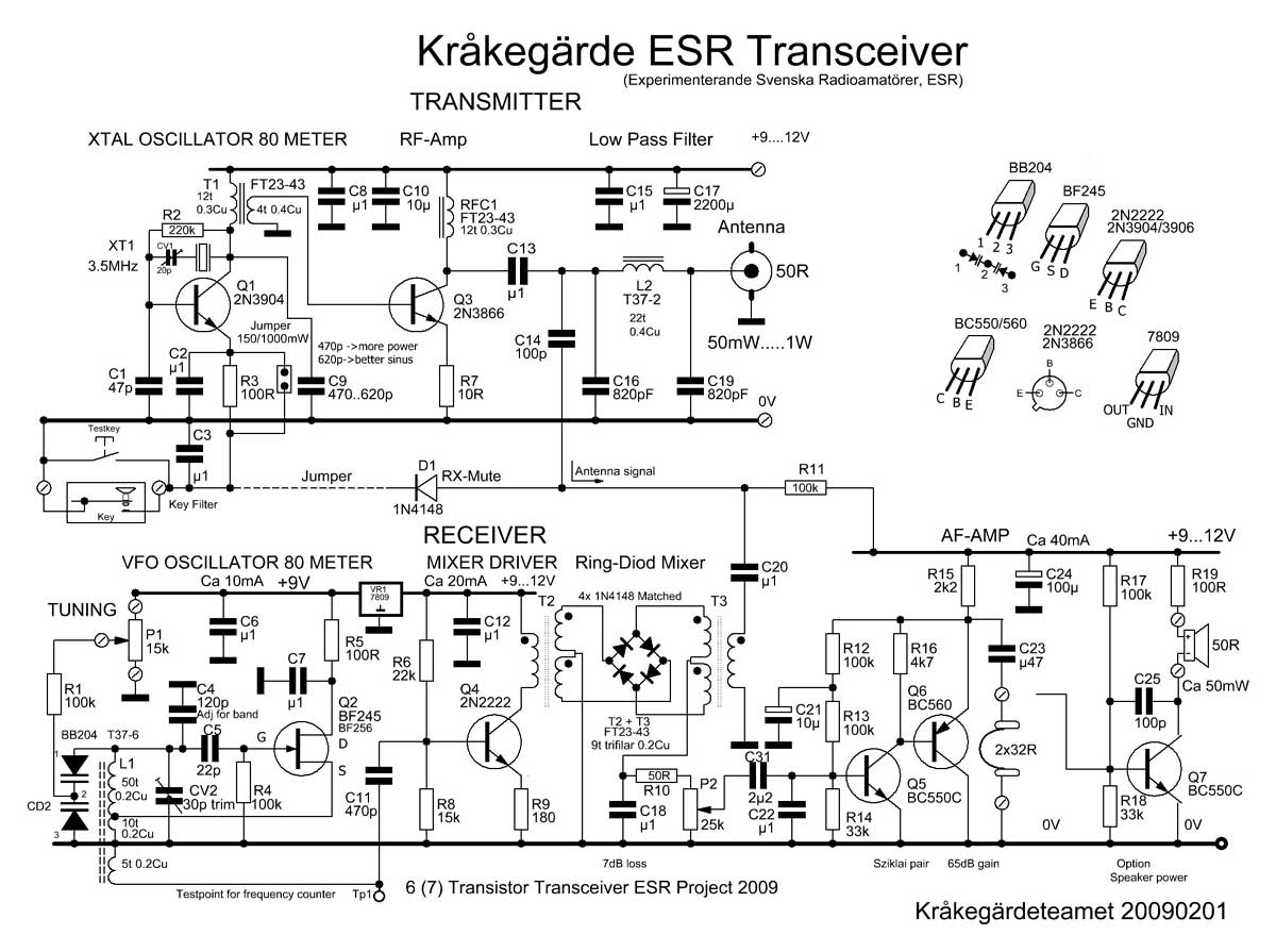 Kristallstyrd sändare och VFO-styrd mottagare.