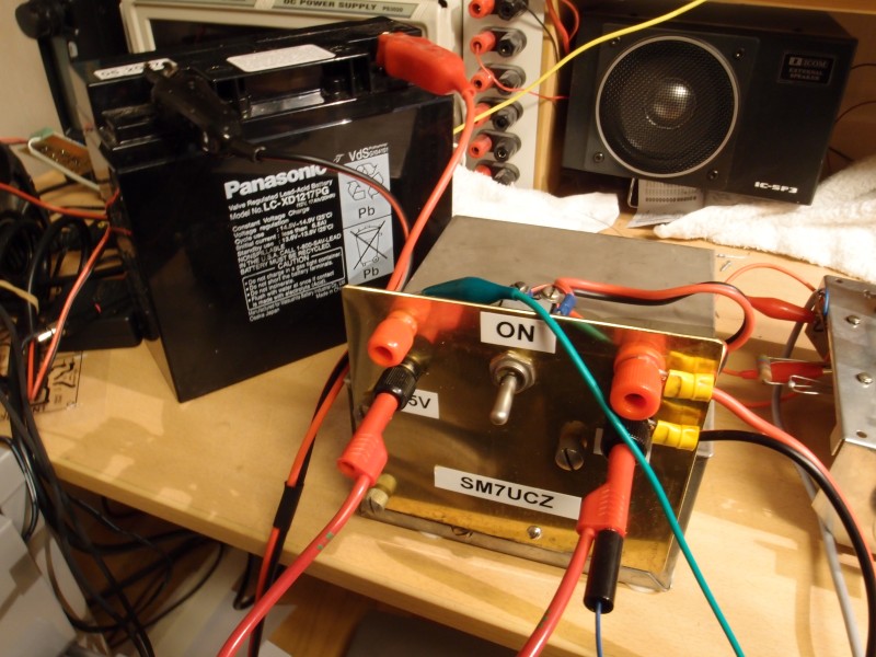 Testkoppling med ett "PI-Filter" innan antennen. ca 3W ut med 230V.