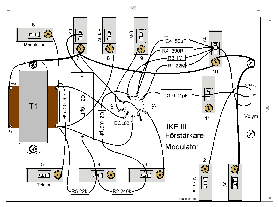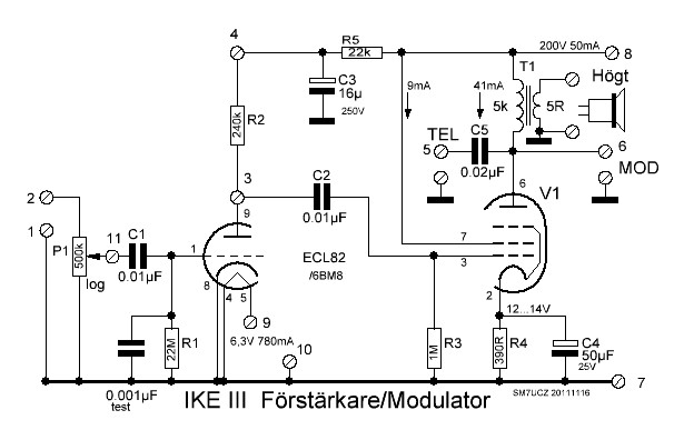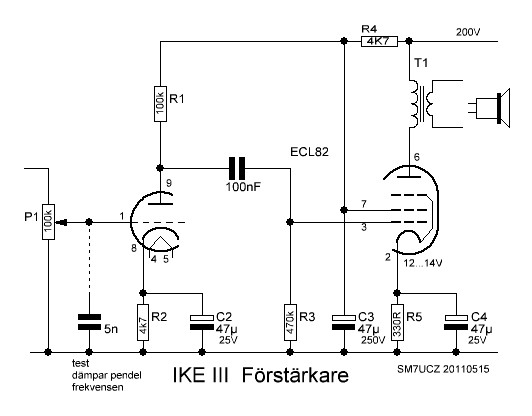 Har ännu inte hittat originalbeskrivning på IKE III, vet bara att det är röret ECL82. Tog en ritning från nätet och byggde upp liknande som IKE I