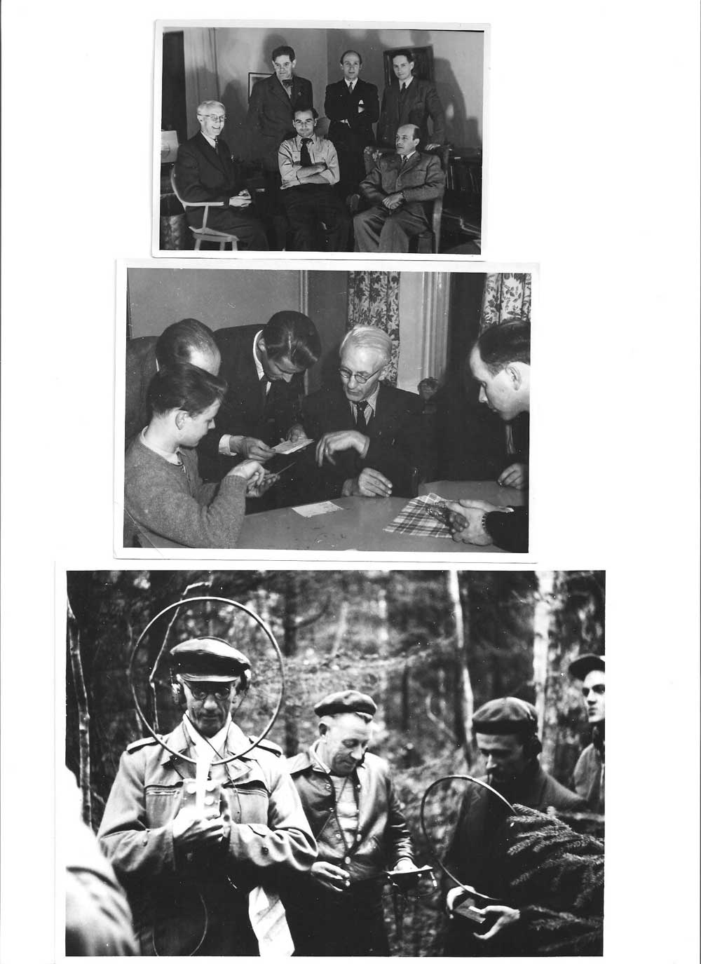Nedersta fotot: SM3RN/Sven, SM3FCZ/ Harry, SM3ARM/ Ture och SM3BAL 12 oktober 1952. Är det inte ett härligt foto?
