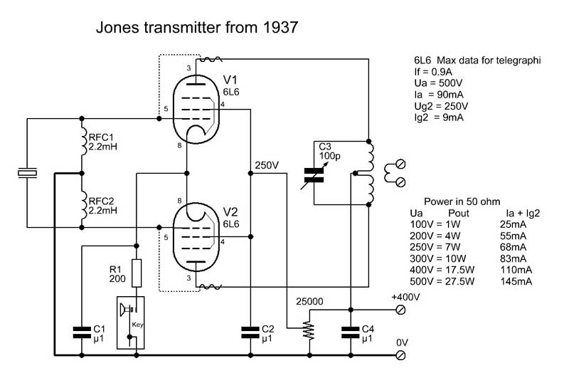 Bengt SM7EQL la ut en ritning om en sändare från boken Jones Radio Handbook utgiven 1937. (Page 18 - 24). Där beskrivs hur det då med det helt purfärska röret 6L6 kunde byggas en enkel sändare med få komponenter. Med så få komponenter borde det gå att utföra detta som julprojekt. De flesta komponeterna hade jag. Resten hittade jag i Ragnars / SM7XFZ:s gömmor. Ragnar bistod även med den fina teakplattan..