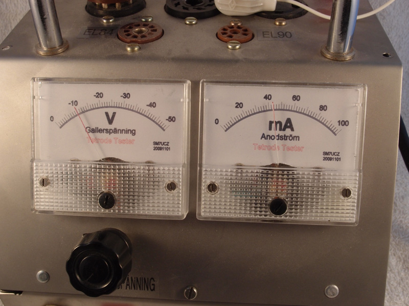 Nu kom tetrodtestare till användning. Med 215V på anoden är dessa rör en aning skarpare än standard 6V6
