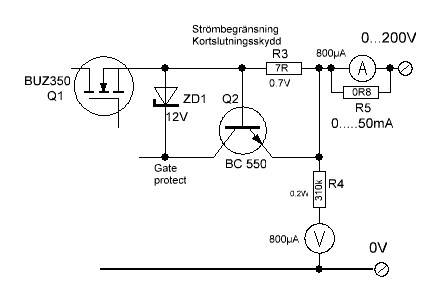 Vi bygger ett litet reglerbart, kortslutningssäkert nätaggregat för våra rör-laborationer med så lite komponenter som möjligt. Det är kortslutningssäkert.