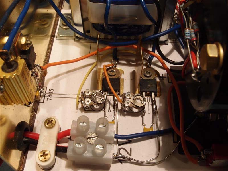 De två trimpotentiometrarna som styr MOS-transistorernas drivning.