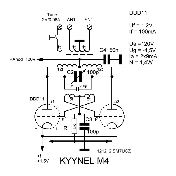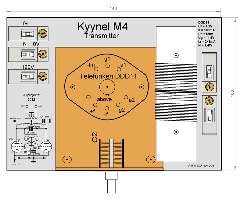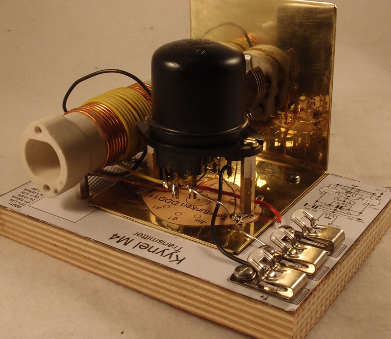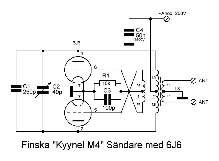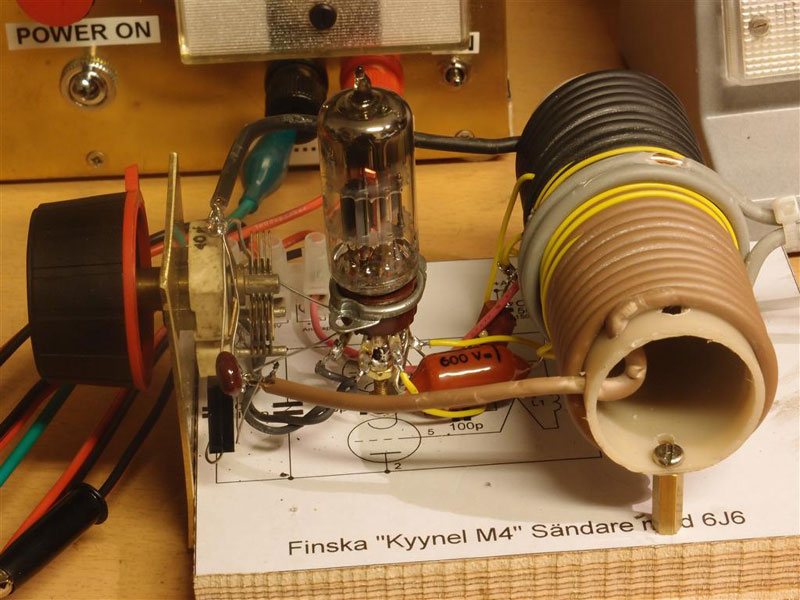 Finnarna gjorde långa räder in i Ryssland, då var det inte aktuellt att släpa på 25kg tunga radiogrejer. Det var det som fanns då. I krigets brådska togs en superlätt sändare fram. Kyynel M4, några kilo med batterierna. Någon mottagare hade man inte!! Utan det blev blindsändning. Finnarna har skrivit mycket om detta . Sändaren är helt frisvängande och antennlängden får inte ändras mellan sändningspassen. En sändare med minimalt med komponenter. Lätt att bära. Röret DDD11 är en dubbeltriod i kraftutförande. Röret kom 1938/39 från Telefunken i stålkapsling. Perfekt för fältbruk. Finnarna hade problem med att få tag i rören... neutrala Sverige bistod med 20 rör till krigförande part! All dokumentation verkar att ha förstörts under och efter kriget. De ritningar som finnes är gjorda i efterhand genom uppmätning av stationerna.