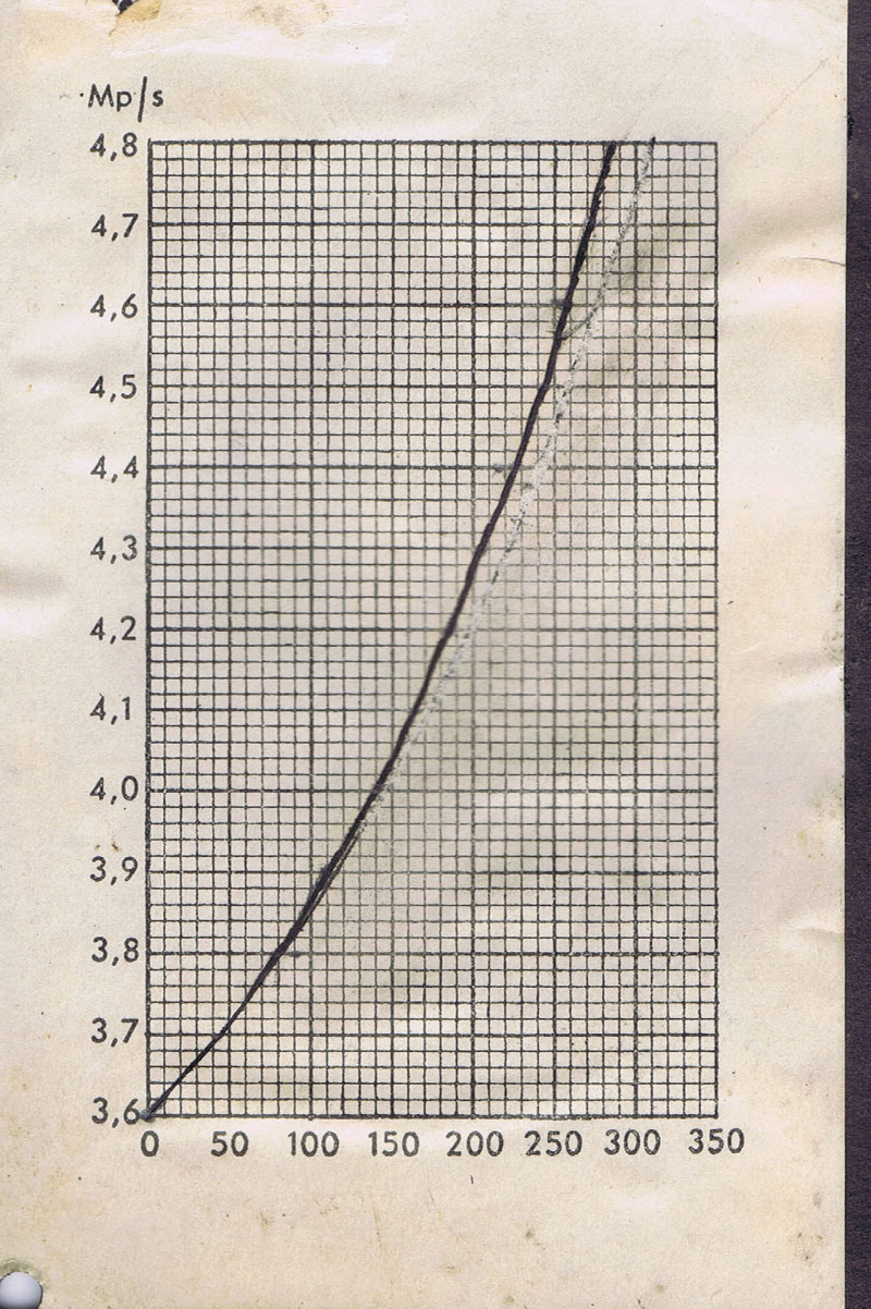 Mottagaren hade två skalor, en grov till höger och fininställningen ovanför ratten. Frekvensen fick avläsas i diagrammet som visas längre ner på sidan. Varje station var unik.