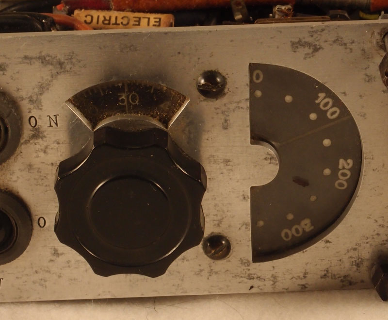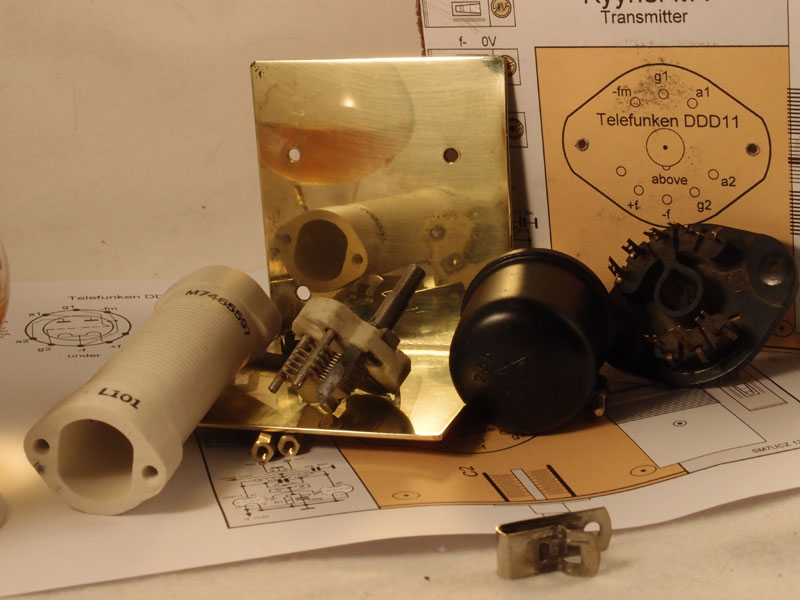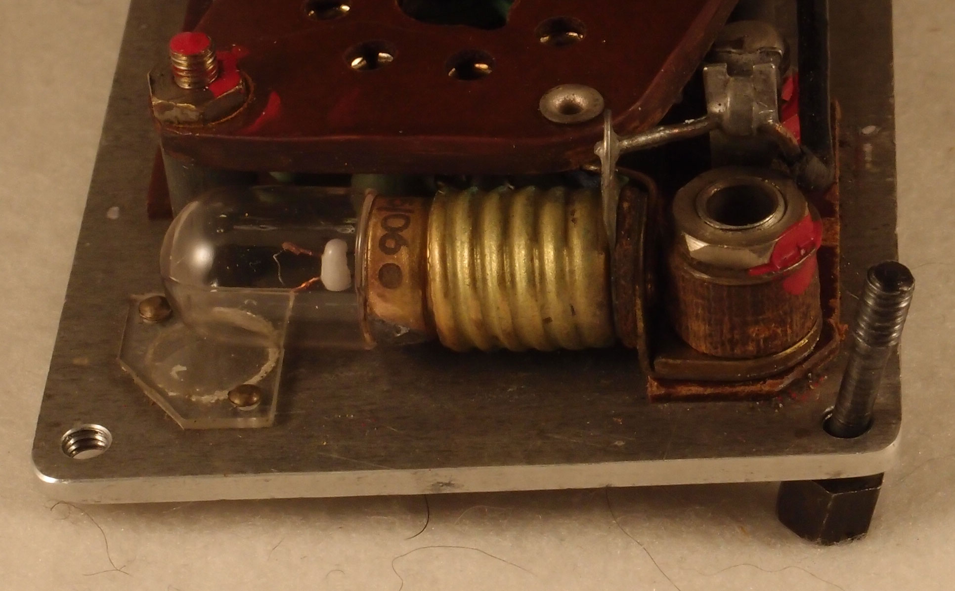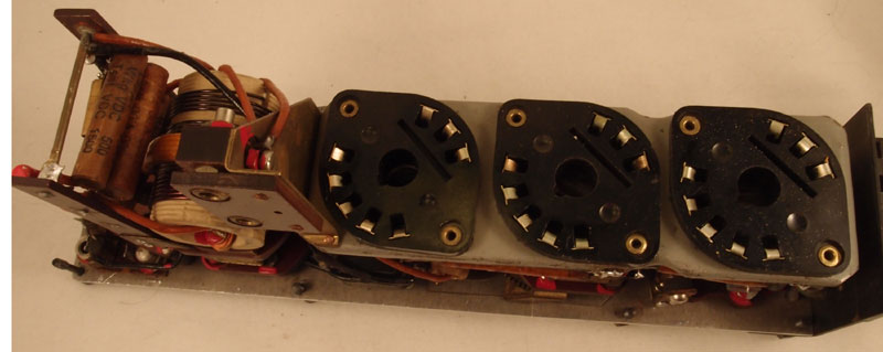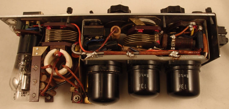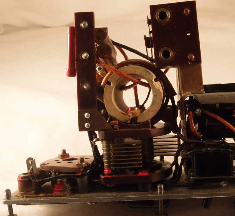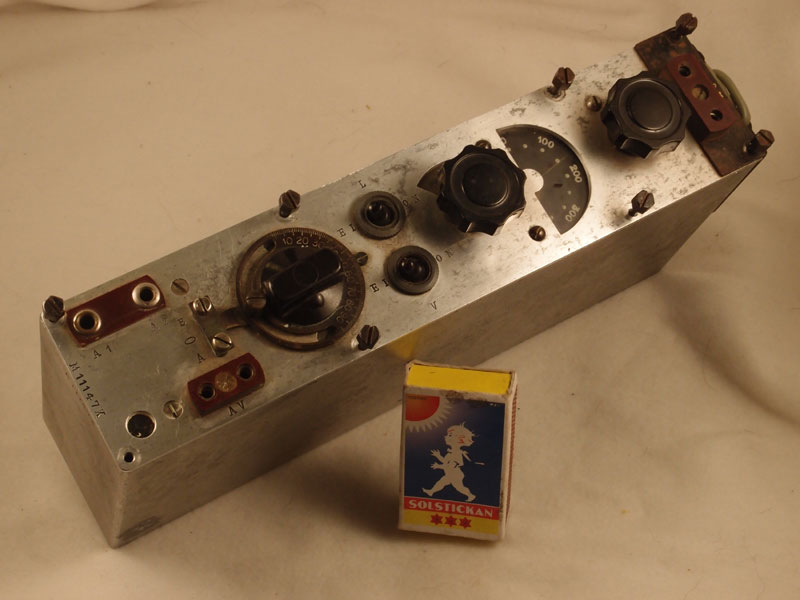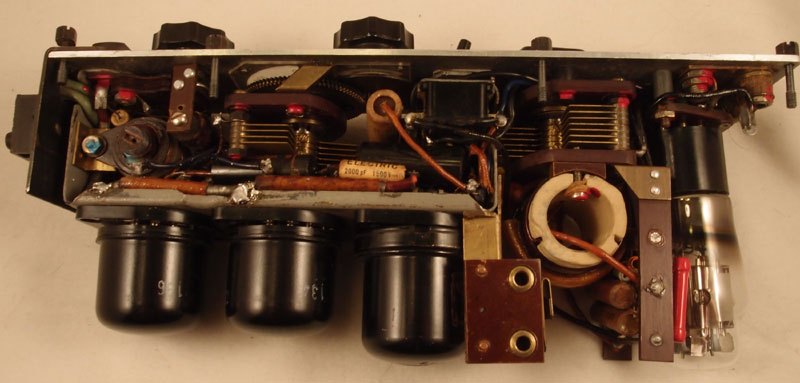 Sändaren, utan röret isatt, med det extra fästet till vänster för kristallen. Apparaterna blev efterhand kompletterade med kristallstyrning. Det fanns ingen plats på panelen för en kristallhållare. Därför blev den monterad på sidan av kapslingen.