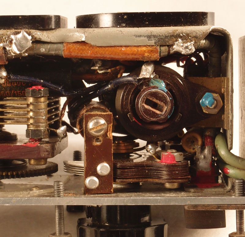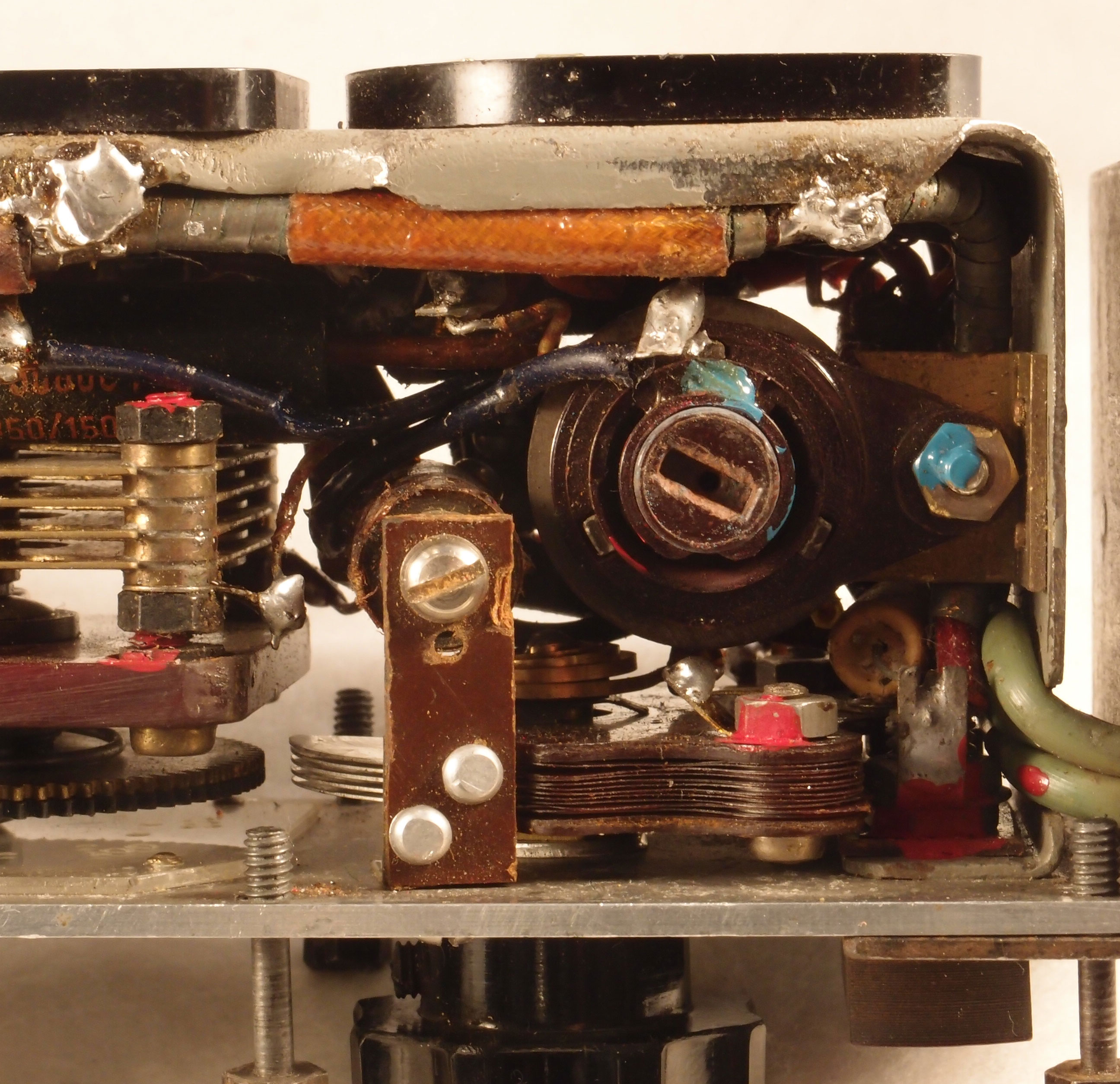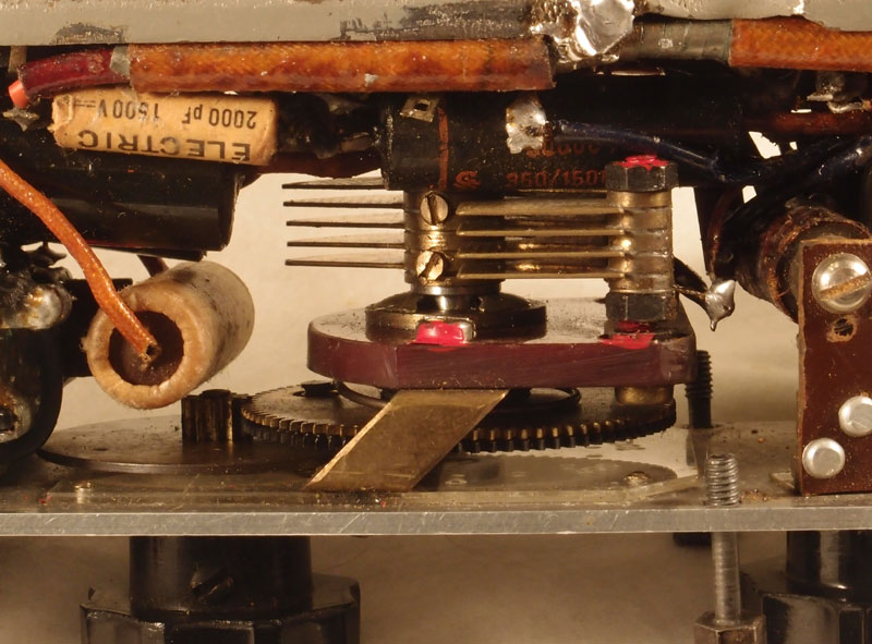 Det fanns ingen radioindustri i Finland. Därför tillverkades egna vridkondensatorer under primitiva förhållanden! Detta är sändarens avstämning.