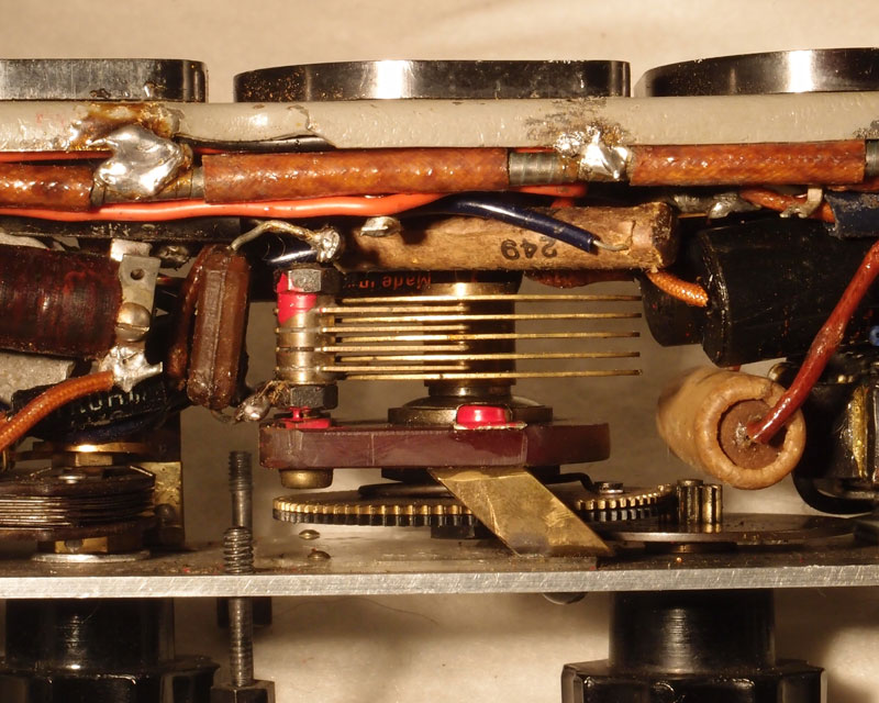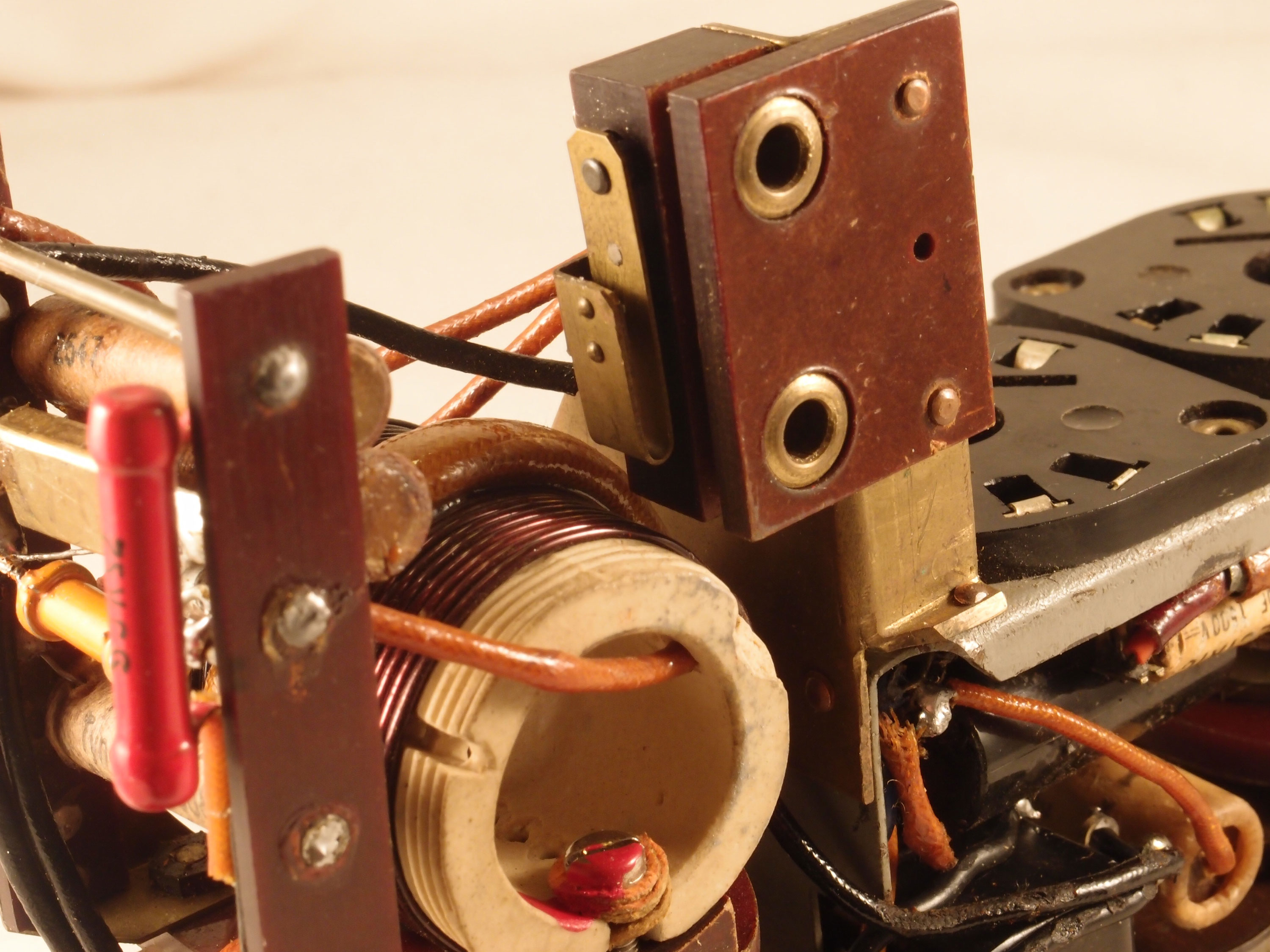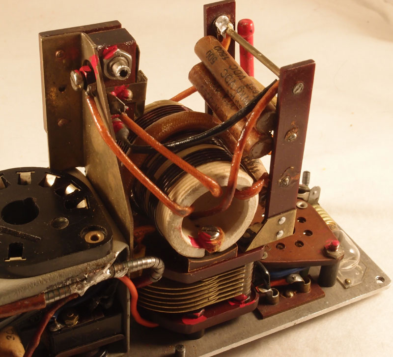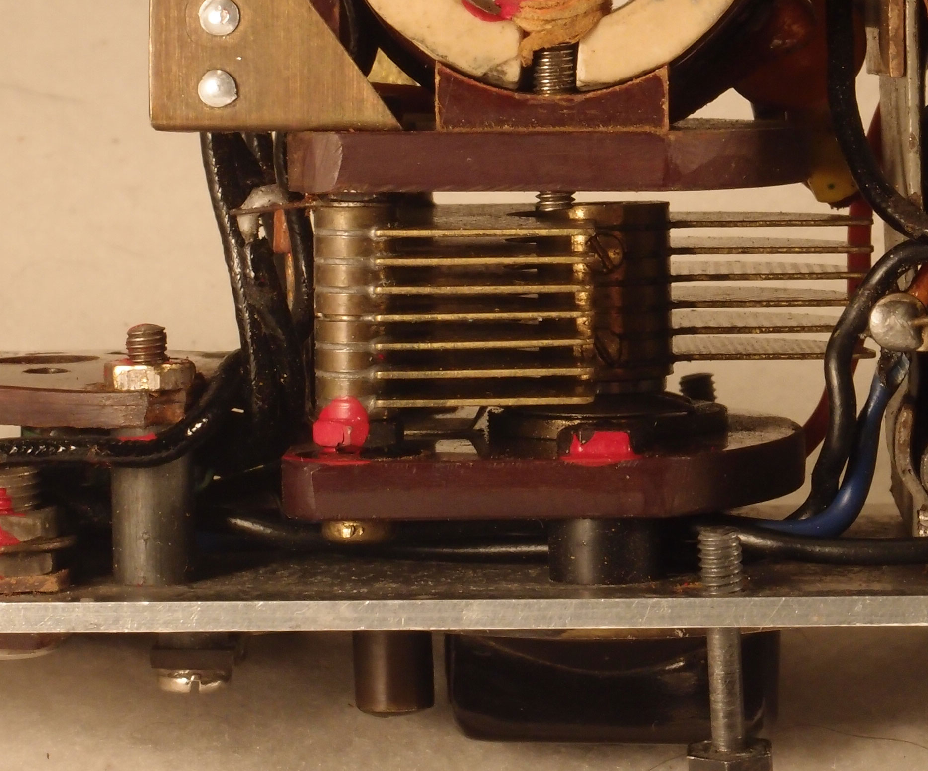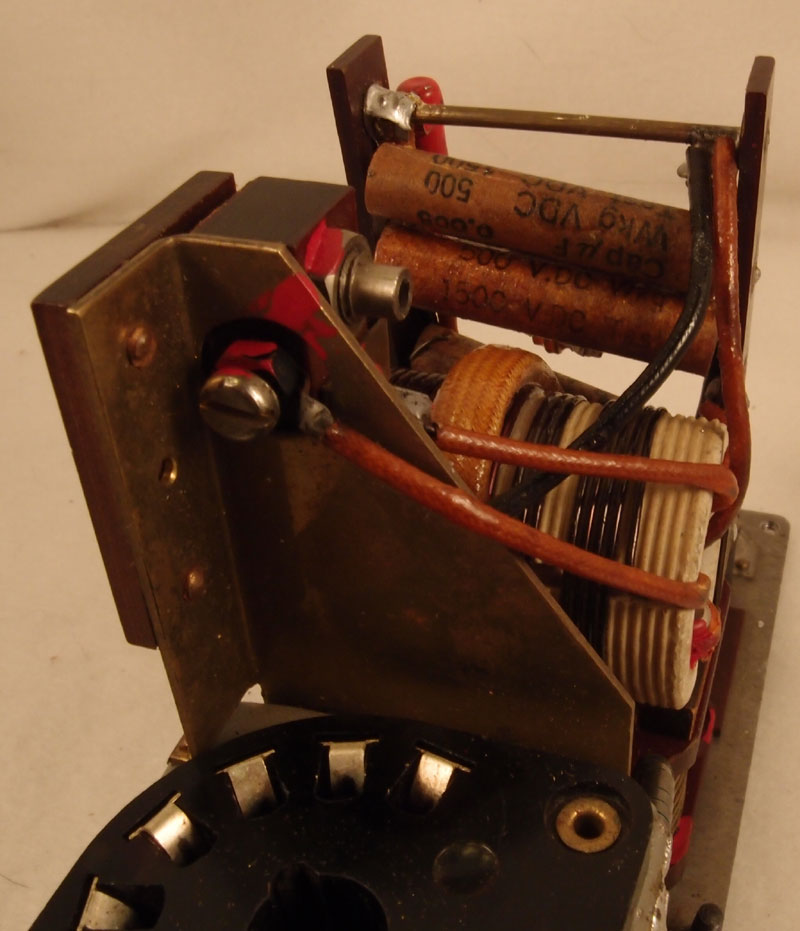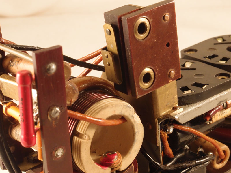 Återkopplingens vridkondensator och mottagarespolen ovanför.