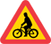 Varningsmärket, varning för cyklande och mopedförare, anger en vägsträcka där cyklande eller mopedförare ofta korsar eller kör in på vägen. ----- Var man skall köra?
