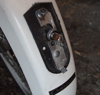 Den nya lampan monterad. Och ingen mekanisk åverkan på mopeden.