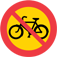 Förbudsmärket, förbud mot trafik med cykel och moped klass II, anger att det är förbud att passera märket med cykel och moped klass II. Avser förbudet även trafik med moped klass I anges det på en tilläggstavla. -----