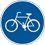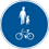 Påbudsmärket, påbjuden gång- och cykelbana, anger gemensam bana för gående och cyklande. Om moped klass II inte får föras på banan anges det på en tilläggstavla. -----