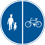 Påbudsmärket, påbjudna gång- och cykelbanor, anger banor som är delade genom vägmarkering, skiljeremsa eller liknande i en del för gående och i en del för cyklande. Om moped klass II inte får föras på banan anges det på en tilläggstavla. -----