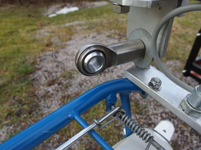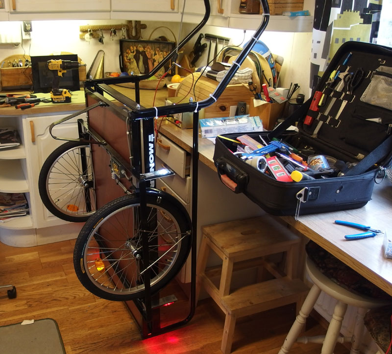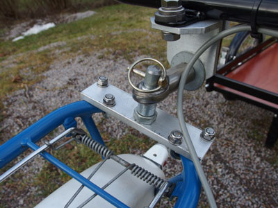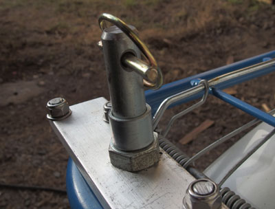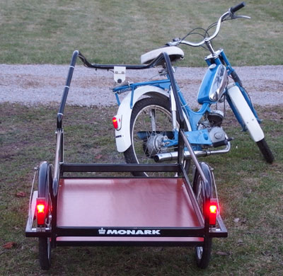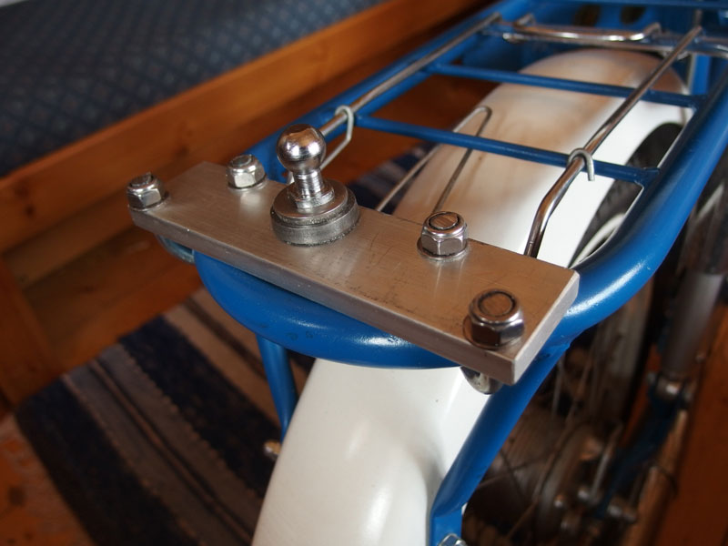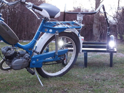 Provkopplat. Har fått bocka draghandaget lite grann extra i en rörbock, eftersom mopeden är så låg.