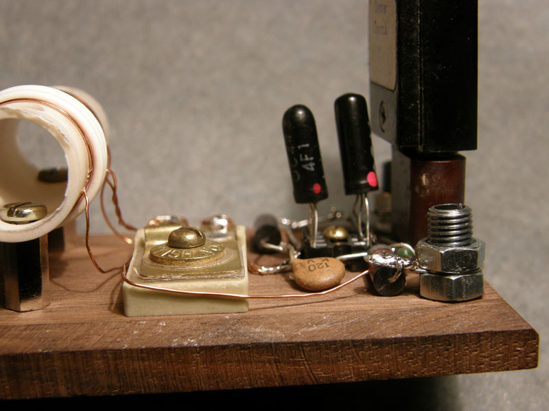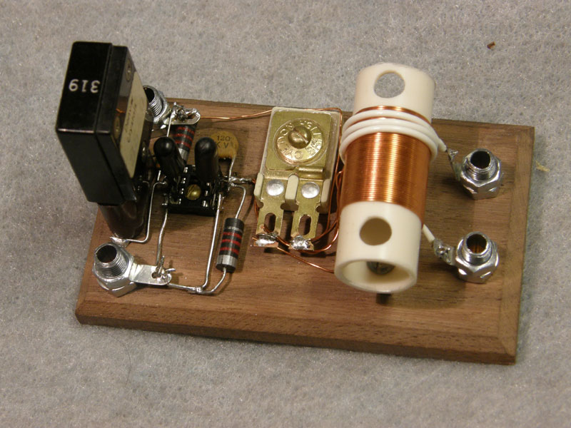 Enligt mitt tycke så har det insmugit sig ett fel i artikeln. Spolen är felvänd. Det borde vara mindre antal varv till kollektorn på transistorn. Transistorn är lågohmig. På min ritning vände jag spolen.