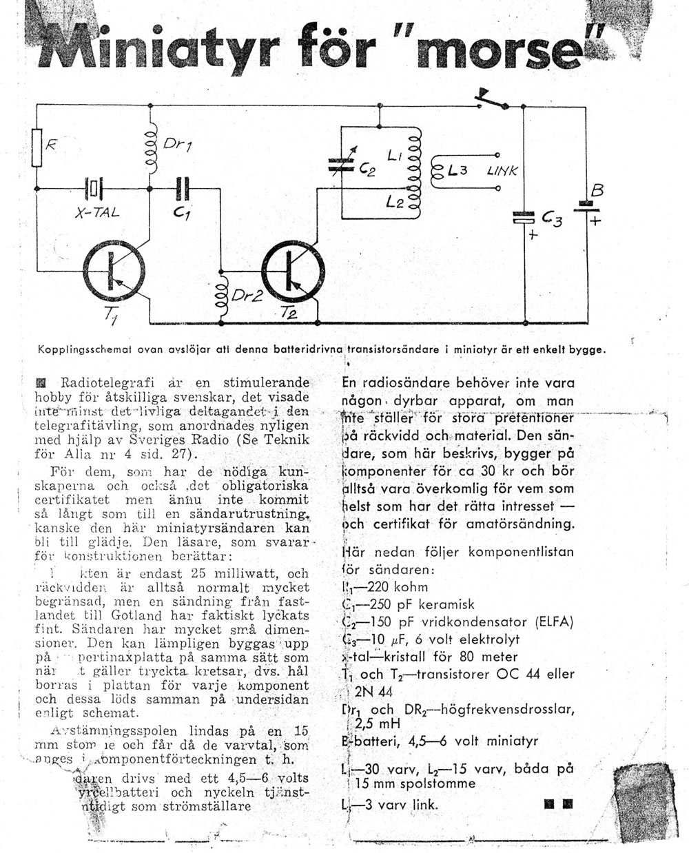 Det har legat ett urklipp i min pärm sedan 60-talet av en artikel om en sändare med två transistorer. Den ska jag bygga... nån gång...