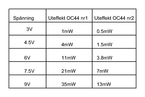 Det är stor spridning mellan de två exemplar jag hade i min låda. Hfe mätte jag till 45 och 70 och det ger tydliga utslag på uteffekten. Jag skiftade transistorerna mellan mätningarna. Högre än 9V vågade jag inte testa. Mot dagens transistorer är datat ganska blygsamt. De användes först i mellanvågsradioapparater som ersättning av rören.