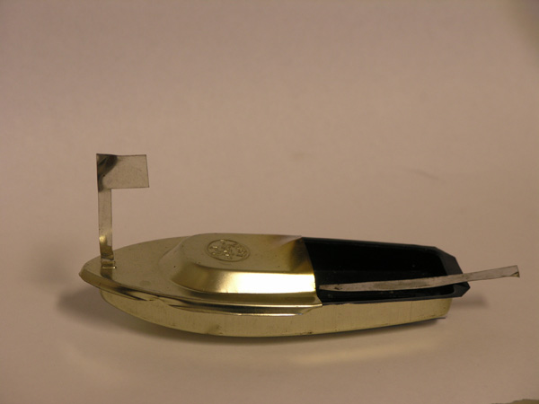 Detta är en rolig leksak. Motorn är en pulsande "ångmaskin" utan rörliga delar. Den lilla pannan fylls med vatten via de två utloppsrören under båten. En liten sprittablett lägges i skeden under pannan och antändes. Efter några sekunder börjar motorn att "poppa". Vattnet förångas och trycks ut genom rören med hög fart.Men direkt efteråt så bildas ett vakum i pannan och nytt vatten sugs in genom utloppsrören och en ny sekvens startar. Det blir ett smattrande ljud med ca 10 pulser per sekund. Titta gärna på denna hemsida: www.nmia.com/~vrbass/pop-pop/
