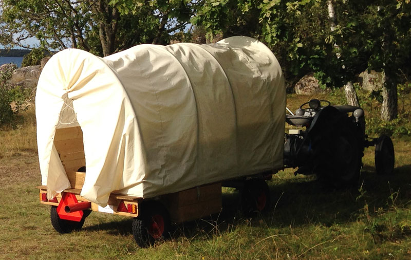 När jag köpte traktorn var det klart att jag skulle följa med på nästa långresa. Tio gubbar på traktorer. Vi är ute ca tre nätter, det behövs något att övernatta i. Det finns husvagnar, men några hade byggt prärievagnar. För mig blev det klart att det skulle vara en prärievagn efter traktorn. Tiden var knapp, några veckor. Jag hade ingenting att börja med.