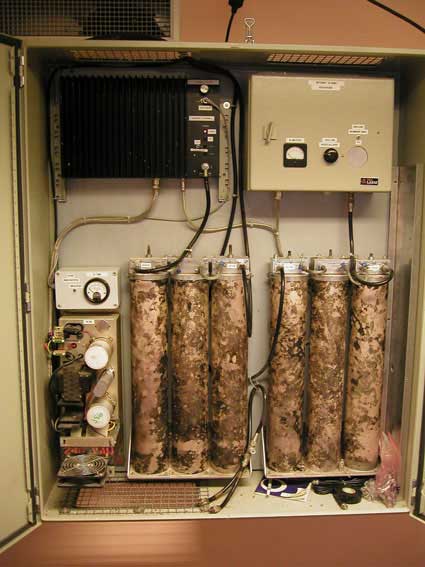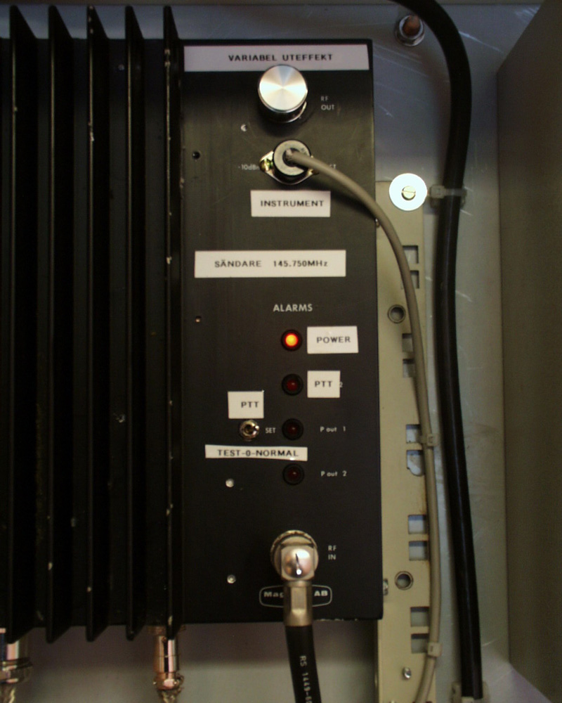 Effekt och SWR instrument. Strömförsörjningen kommer från ett bauta-aggregat från tidigare Comvik systemet. Det är drosselreglerat.