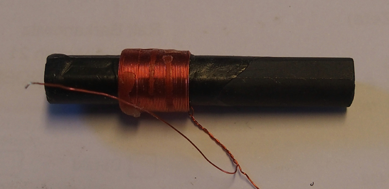 Detta projekt är utmärkt till att leta efter slingan när den fungerar, då hittar man den inom någon millimeters noggrannhet! Men vid avbrott är detta projekt urdåligt! Det går ingen ström i slingan som genererar magnetfält till pickupspolen.Att leta avbrott i robotens begränsningskabel har sina bekymmer. Jag har tidigare använt en liten mellanvågsradio. Men den är inte så känslig som man önskar..Visst, jag har råd att köpa en ledningsprovare. Men ville prova själv... Kanske ska sägas att det är en Husqvarna 450X jag har, Andra fabrikat kanske jobbar med likvärdiga parametrar? Första försöket att leta efter robotslingan. En spole och en högohmig kristallhörsnäcka. Med den så hörs knattret tydligt, men kanske inte så högt. Inga batterier eller förstärkare för att höra slingan. Hittade en spole i gömmorna, den är lite plundrad på tråd. Mätte upp 20mH induktans. Tryckte i en M6 bult, då ökade induktansen till 30mH. VidareutvecklingKopplade spolen in på en liten "leksaksförstärkare". Nu blev det knatter i lådan. Om man svänger spolen över tråden, så tystnar knattret exakt över tråden. Och ljudet är starkt vid sidorna. Eftersom slingan jobbar med 8 kHz så är det inom hörbart område. Det behövs inga AM detektorer eller annat. Efter lite googling fick jag veta att frekvensen är väldigt låg, 8kHz, inom det hörbara området ifall det inte hade varit magnetisk frekvens. Stormakterna använder dessa låga frekvenser för kommunikation till ubåtar i u-läge. Robotslingan sänder med 8 kHz fyrkantspulser, vilket är ett gissel för radioamatörer. Men i gengäld är dessa pulser lätta att leta efter med enkla medel. Guidetrådarna sänder med annorlunda pulser. Provade med en ferritantenn avsedd för 77,5 kHz.... Då hör man alla kvarterets robotslingor på skrivbordet... alltså alldeles för bra!