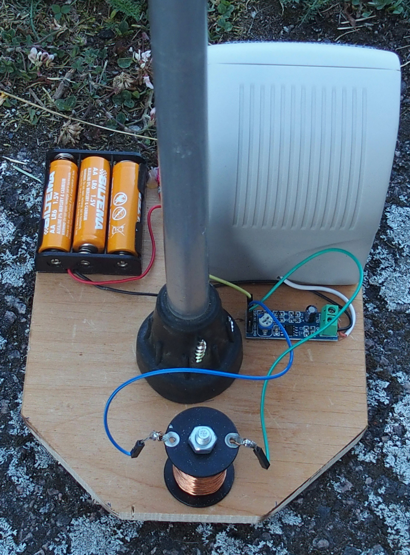 Lite mer fältmässigtAllt monterat på en platta tillsammans med en avlagd krycka. Fältmässigt men inte väderskyddad.
