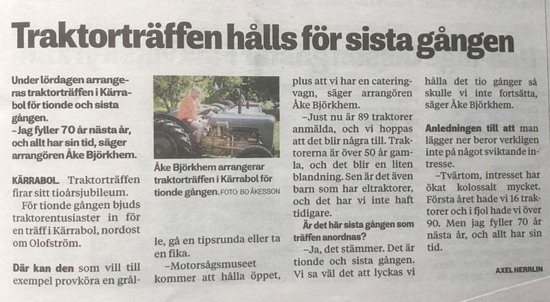 Vi ska till Åke Björkhem som arrangerar sin tionde och sista traktorträff den 25 maj 2019