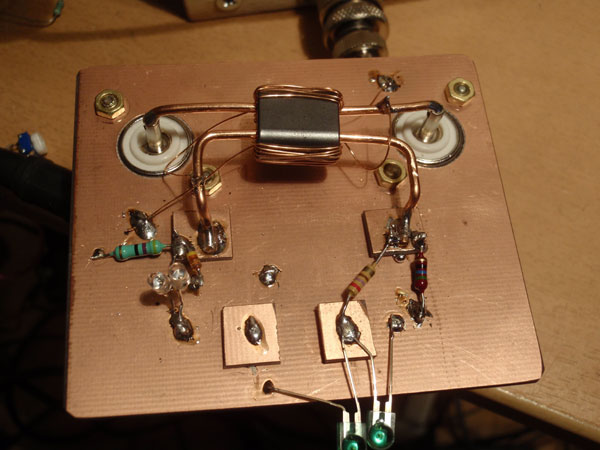 Här lindade jag riktkopplaren på en liten kärna BN43-2402, eftersom det handlar om QRP-effekter. Här finns mer att utveckla. Någon som har ideer??