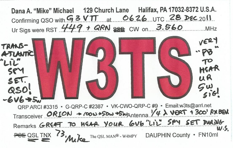 Allen where I achieved solid copy from him at power levels of 5 watts then