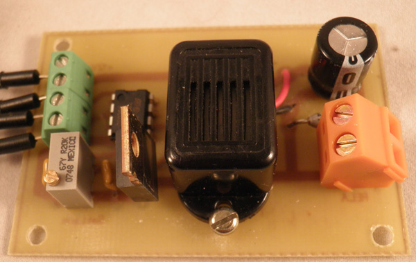 Steget är inte långt att lägga in övervakning för överström. Här sitter en summer och utgång för 12V relä. Summern störde systemet så jag har bytt den till ett relä.