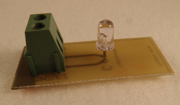 Placera lysdioden i "luften" Isolera vissa ben med den avskalade isoleringen från kopplingstråden.