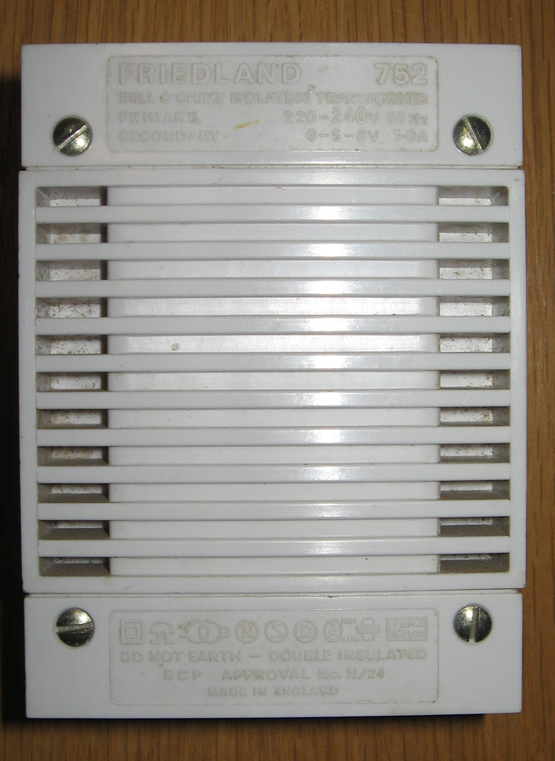 Tryckknappen är kopplad till en transformator och en "Ding-Dong" eller en ringklocka av något slag.