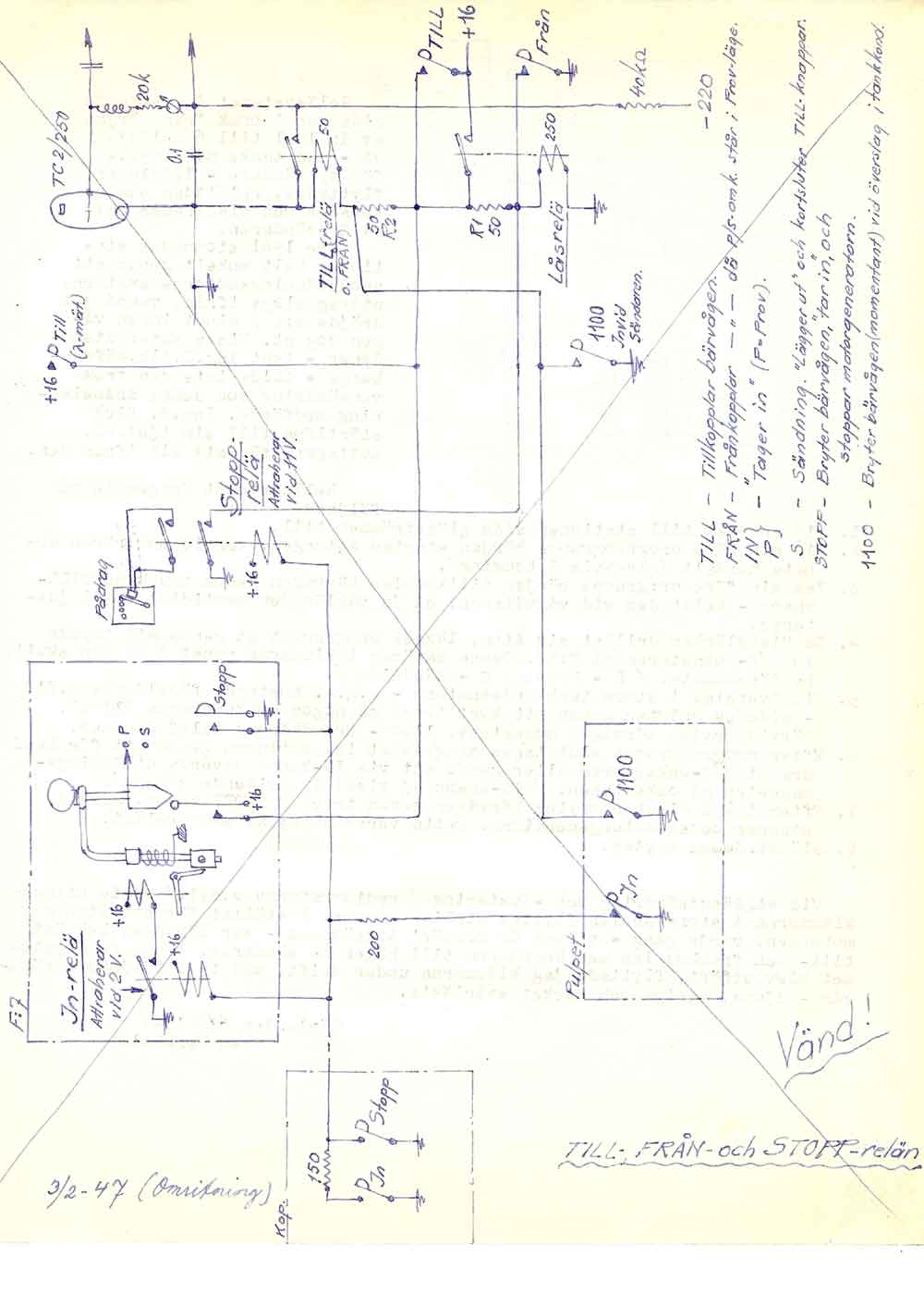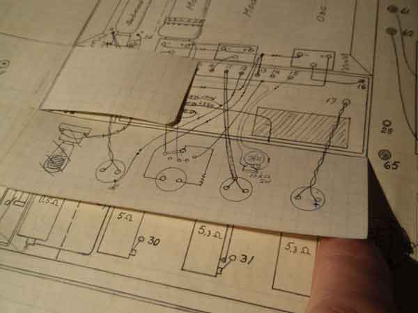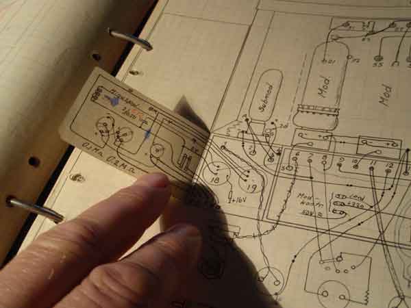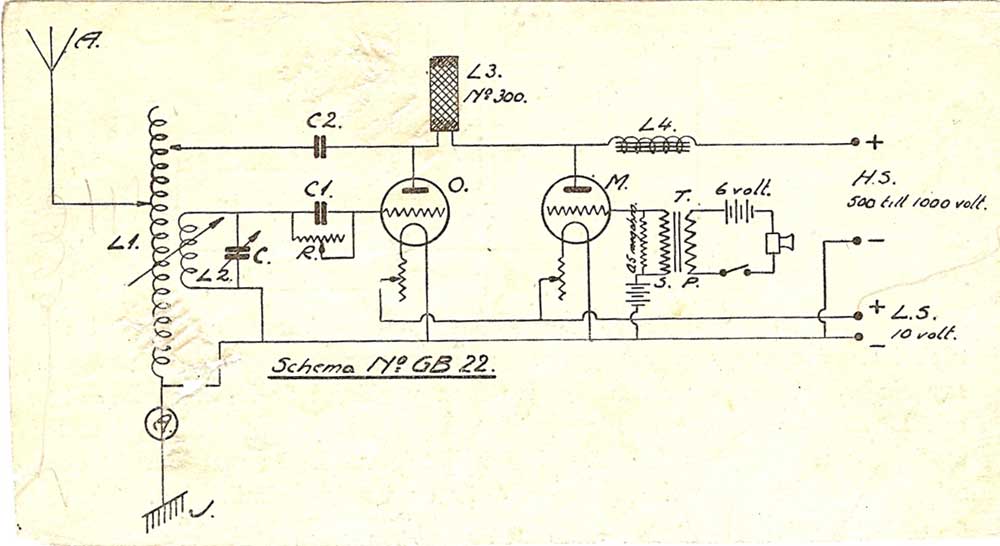 Schemat från katalogen Graham Brothers, Stockholm som Berholm kopierade för sin första sändare. Noggrant utskuret ur katalogen och sparat av Bernholm i sin ritningspärm.