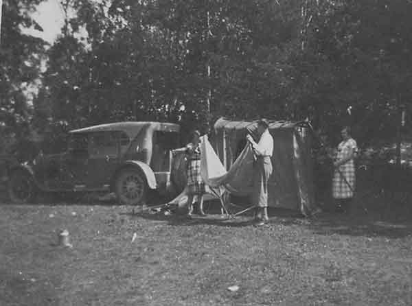Bilradio inmonterad under campingresa i Stockholm 1933