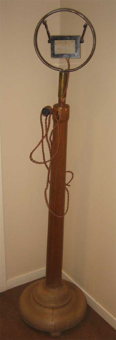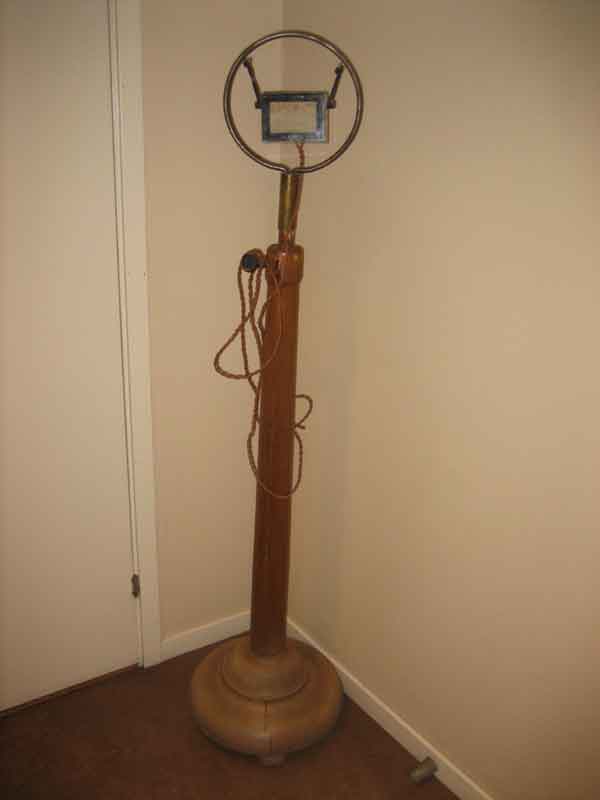 Tidig mikrofon som idag står hos lokalradion i Gävle . Kolkornsmikrofon i marmorhus. Upphängd i gummisnoddar så inte "golvtramp" och annat går in i mikrofonen baklänges.