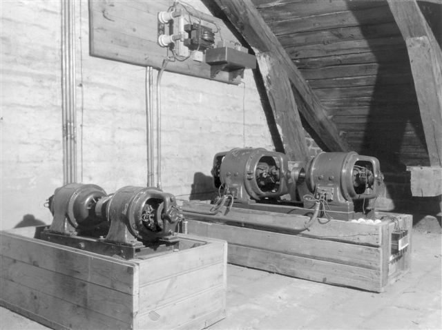 Sändaren byggdes om 1939 med nya modernare rör som fick ventilation genom trumman upp på vinden. Nu är sändaren kapslad, men oscillatorspolen är fortfarande öppen med sina 2000V.