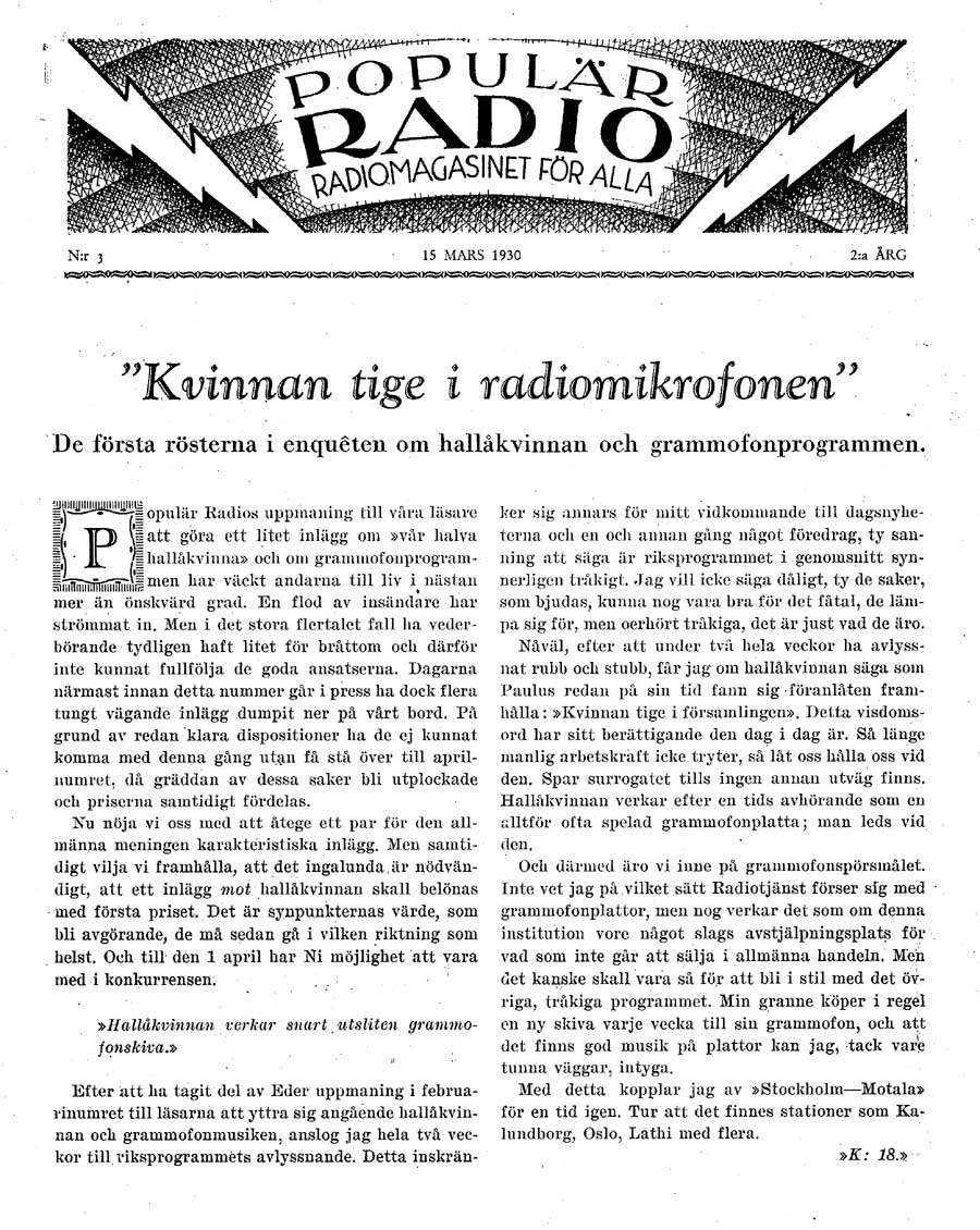 Undrar om denne insändare "K: 18." hade överlevt denna attack idag?? Det gällde att slå revir om det nya forumet.