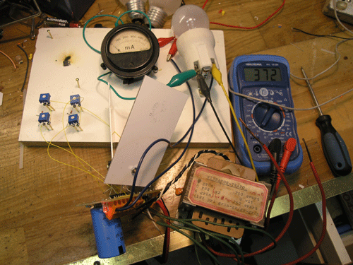 I used a 15W 230V lamp which gets 371V. It was bright! About 100mA at 371V is about 37W. It's enough for the Paraset who needs about 15- 20W in transmit mode.