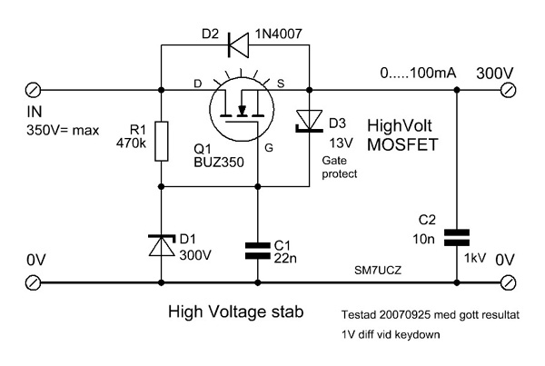 The voltage dropped from 350V to 290V at keydow, depending of the battery charge.I made a simple test to stabilize the voltage.